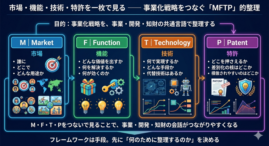 市場・機能・技術・特許を一枚で見る ―― 事業化戦略をつなぐ「MFTP」的整理